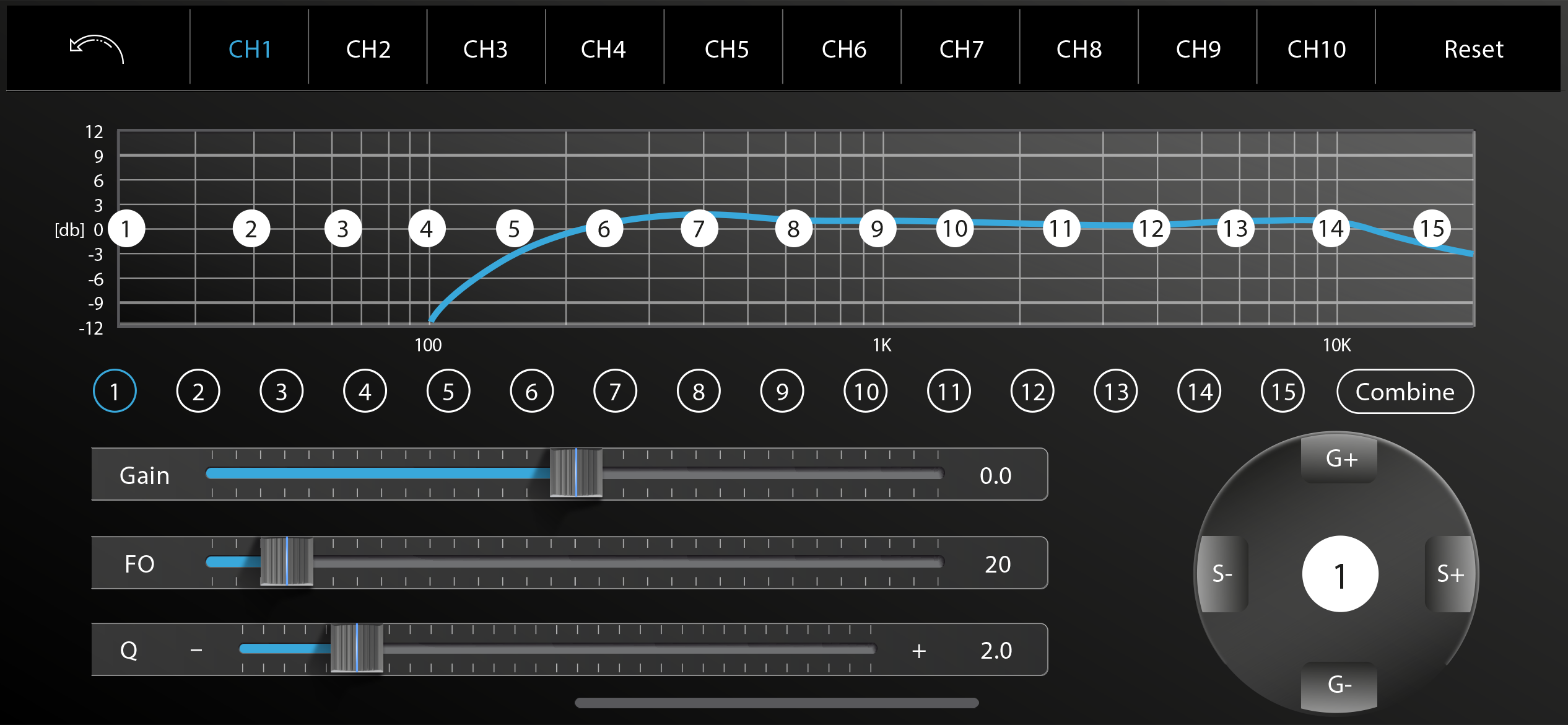 • Volně konfigurovatelný 15pásmový parametrický ekvalizér pro každý kanál
