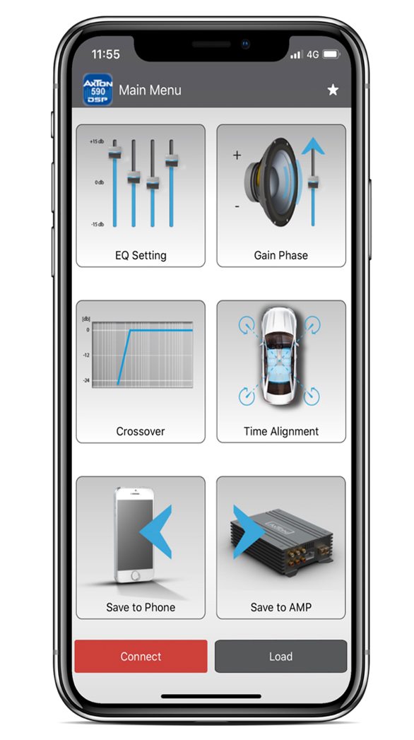 • Chytrý digitální zesilovač s funkcemi DSP nastavitený přes mobil iOS nebo Android.