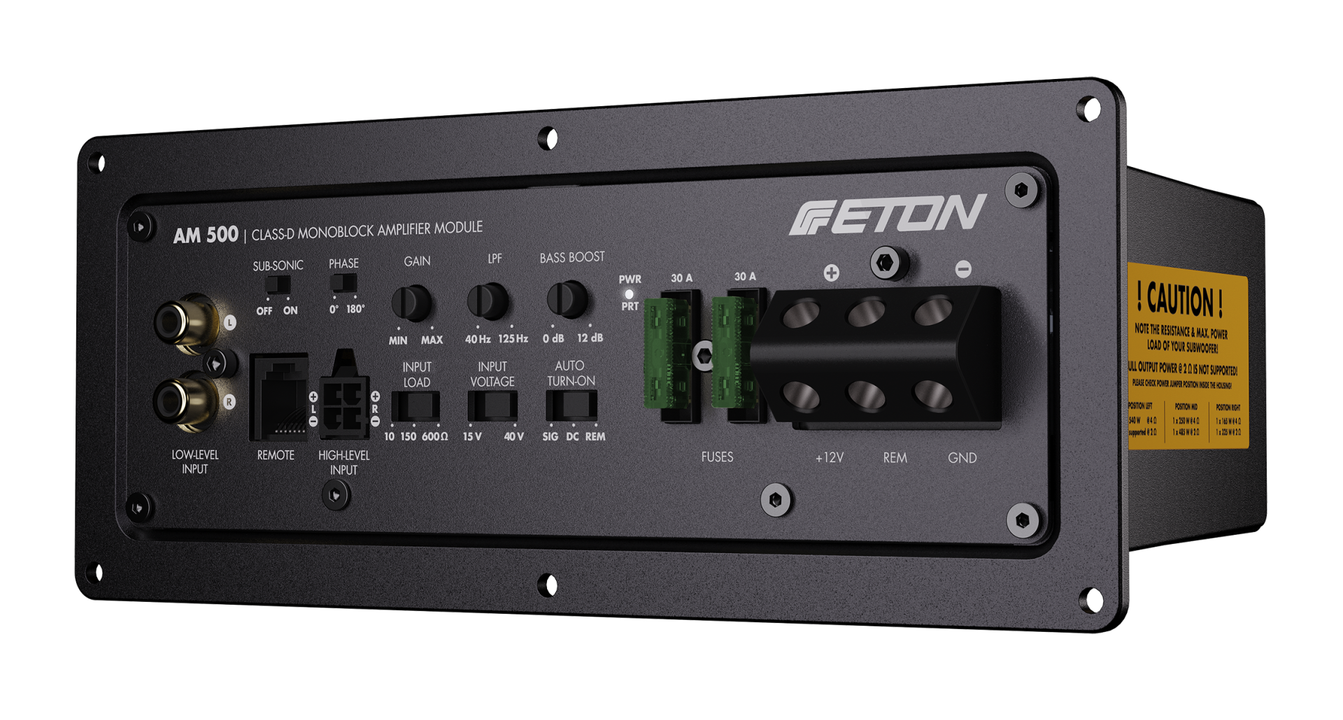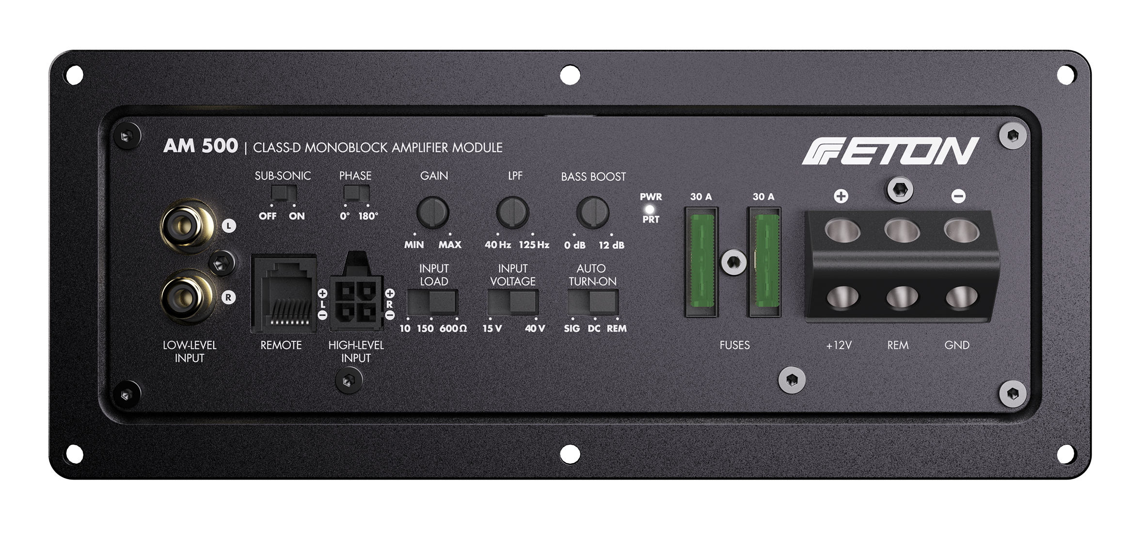 • 1kanálový zesilovač třídy D pro instalaci do subwooferových ozvučnic