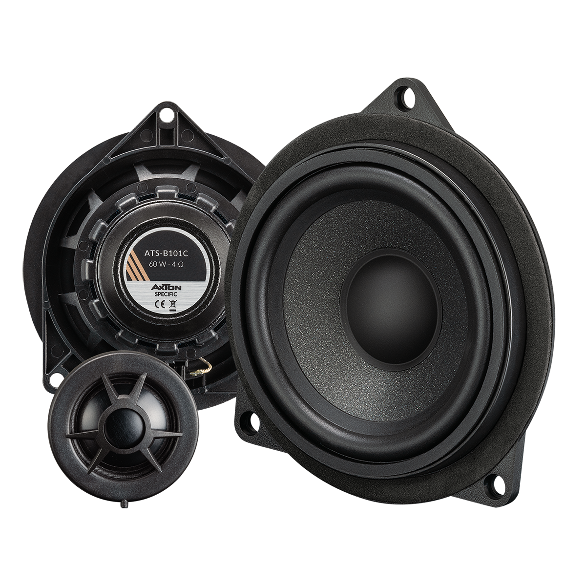 ATS-B101C 10 cm komponentní systém – Užijte si brilantní výšky, basy naplňující celý prostor a vychutnejte si jedinečný design nové řady reproduktorů SPECIFIC: Všechny systémy Axton BMW jsou vyvinuty pro maximální Hi-Fi požitek a zdokonaleny pro to nejdůležitější – bez zbytečného hogo fogo.