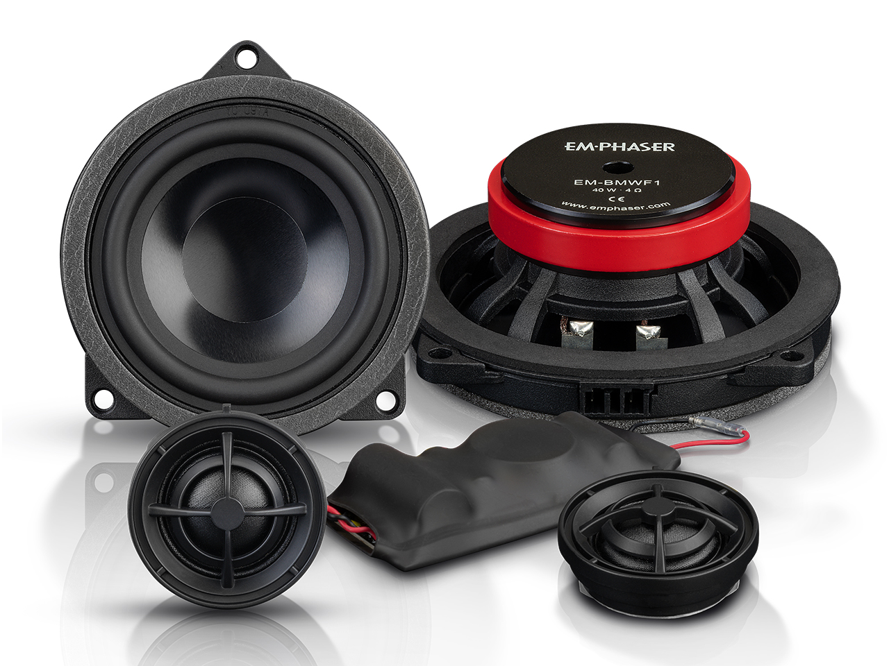 EM-BMWF1 jsou nové 10 cm komponentní reproduktory od Emphaseru. Dovybavené během pár minut, tyto high-end reproduktory promění vaše BMW v koncertní sál. Perfektní sladění individuálních komponent kulminuje ve fantastický hudební zážitek, který ve vašem BMW chyběl – dynamický rozsah, přírodní reprodukce hlasu a jemné vykreslení vysokých frekvencí.
