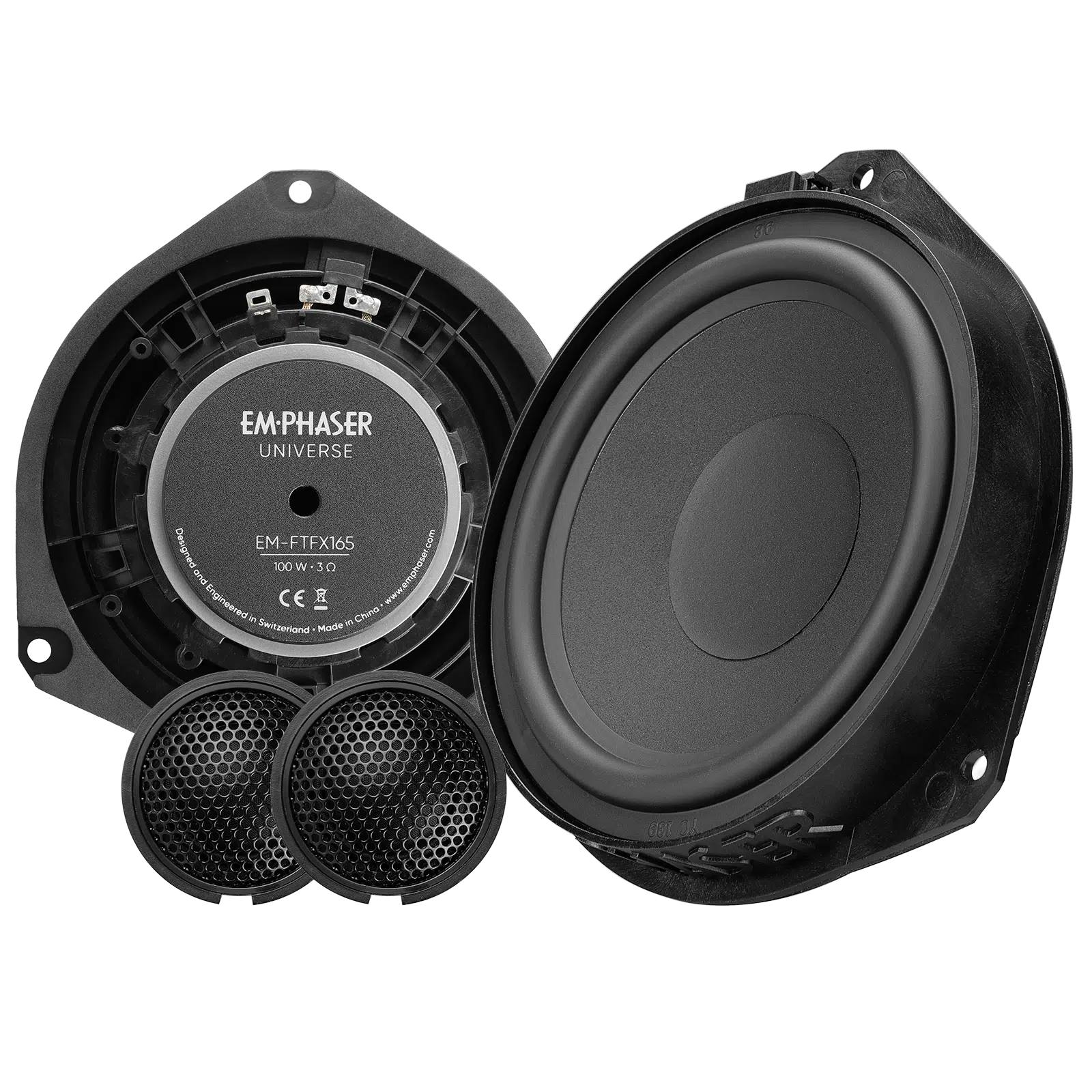 EM-FTFX165 je univerzální 16,5cm / 6,5″ dvoupásmová sada reproduktorů typu Plug & Play, která je kompatibilní s vozidly Fiat, jako jsou Ducato III a 500. Tento systém komponentů je akusticky vyladěný pro kompatibilní modely a nabízí dokonalou montáž do původních montážních míst. Všechna připojení jsou provedena pomocí originálních konektorů vozidla.