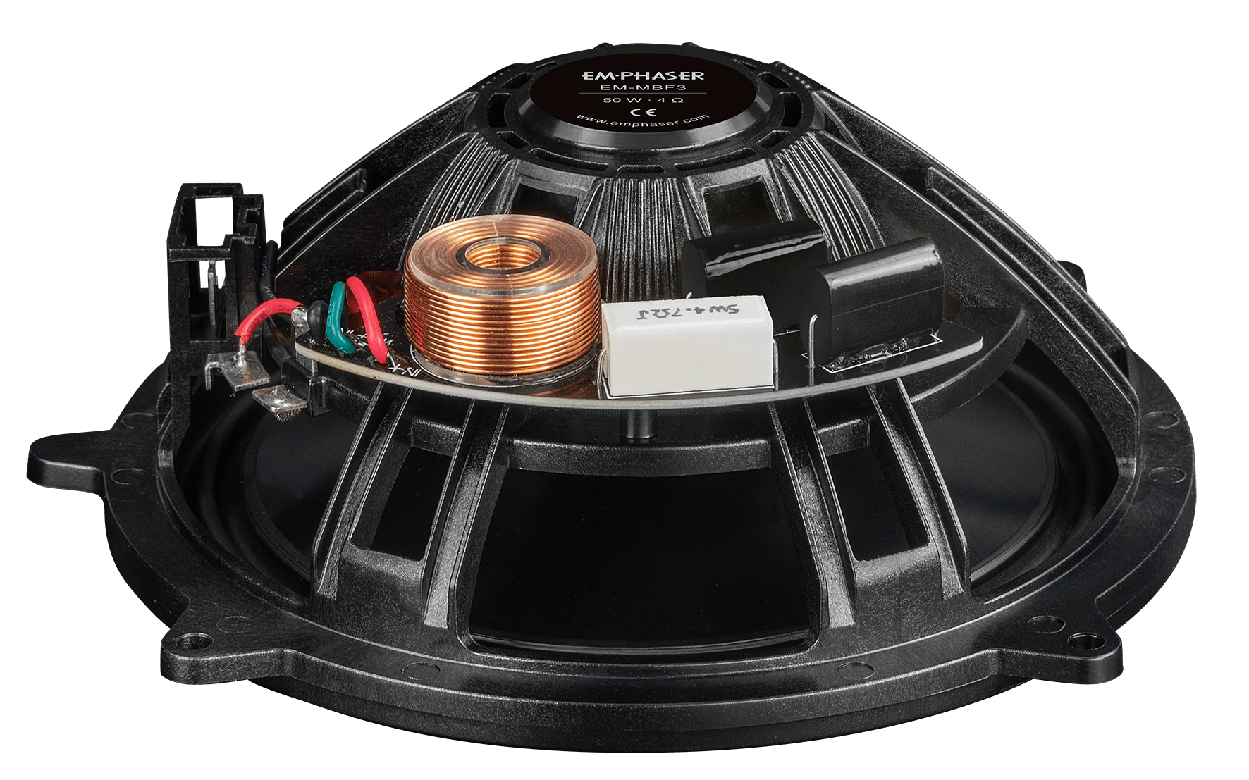 Jak již je u EMPHASER zvykem, reproduktory jsou vybaveny hliníkovými membránami, které zaručují detailní a přirozený charakter zvuku. Neodymový pohon 16,5 cm wooferu se stará a potřebný výkon, zatímco vlnovec Connex a Cambridge závěs zaručují nízké zkreslení – i při vysoké hlasitosti. Faradayová měděná krytka linearizuje impedanci, což vede ke stejnému výkonu zesilovače přes celé frekvenční pásmo – systém tak přehrává stabilní zvukový obraz.