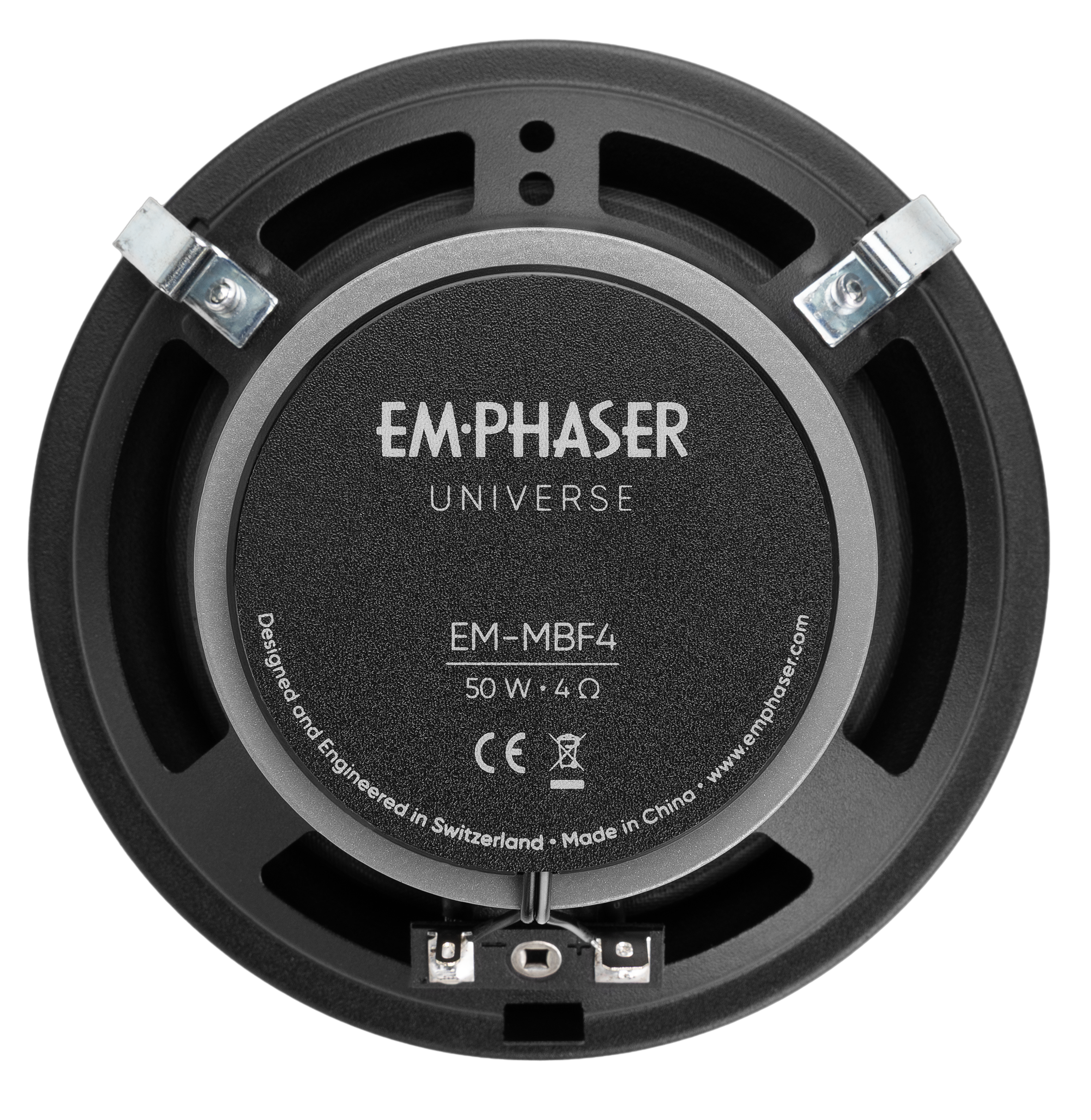 Šasi EM-MBF4 se skládá z 12cm středového reproduktoru a 16mm výškového reproduktoru. Hybridní membrána EMPHASER CrystalGrain nabízí zvukové výhody papírové membrány a zlepšuje tuhost a odezvu díky vrstvě křemenných krystalů na povrchu.