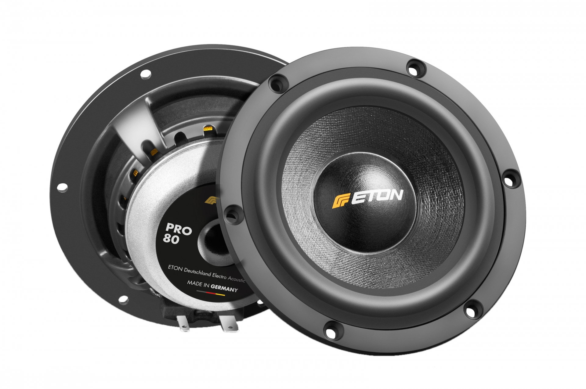 K produktu ETON PRO 175 nabízíme rozšíření na 3pásmový systém s PRO 80 středovým reproduktorem. Díky ručně potažené papírové membráně a výkonnému neodymovému magnetu je v tomto 80 mm reproduktoru zachována zvuková charakteristika série. Optimální chlazení je zaručeno díky odlévanému hliníkovému koši s dobrým průtokem vzduchu. Vrtaný chladící otvor zaručuje dodatečné chlazení. Optimální symetrie magnetického pole se silným pohonem zaručuje prvotřídní výsledky měření a vůči zkreslení odolnou reprodukci hudby, perfektně harmonizující s ETON PRO 175. Připojovací terminály s kompaktními rozměry vám ušetří místo a zjednoduší instalaci PRO 80. K pasivnímu provozu je zapotřebí set frekvenčních výhybek MRX-3W.