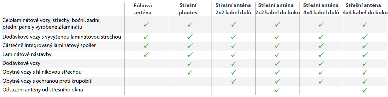 Pro každé vozidlo je k dispozici vhodná anténa, ať už se jedná o dodávku, karavan nebo obytný vůz.