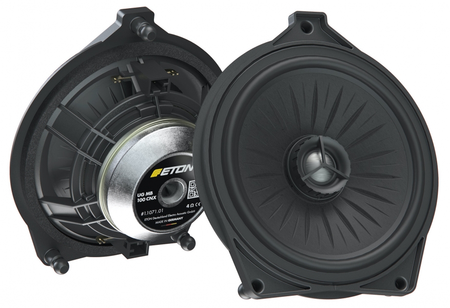 ETON MB100CNX je 10 cm Plug & Play single centr-koaxiální reproduktor s polyamidovým košem zesíleným skelným vláknem a integrovaným 15 mm hliníkovým výškovým reproduktorem vč. výškové frekvenční výhybky. Vhodný pro různé Mercedes-Benz modely. Made in Germany!