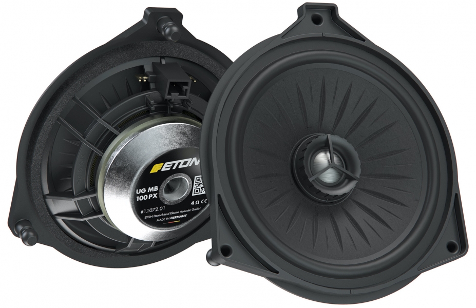 ETON MB100PX je 10 cm koaxiální Plug & Play systém sestávající ze speciálně navržených středobasových reproduktorů s polyamidovým košem zesíleným skelným vláknem a integrovanými 15 mm hliníkovými výškovými reproduktory vč. výškových frekvenčních výhybek. Vhodný pro různé Mercedes-Benz modely. Made in Germany!