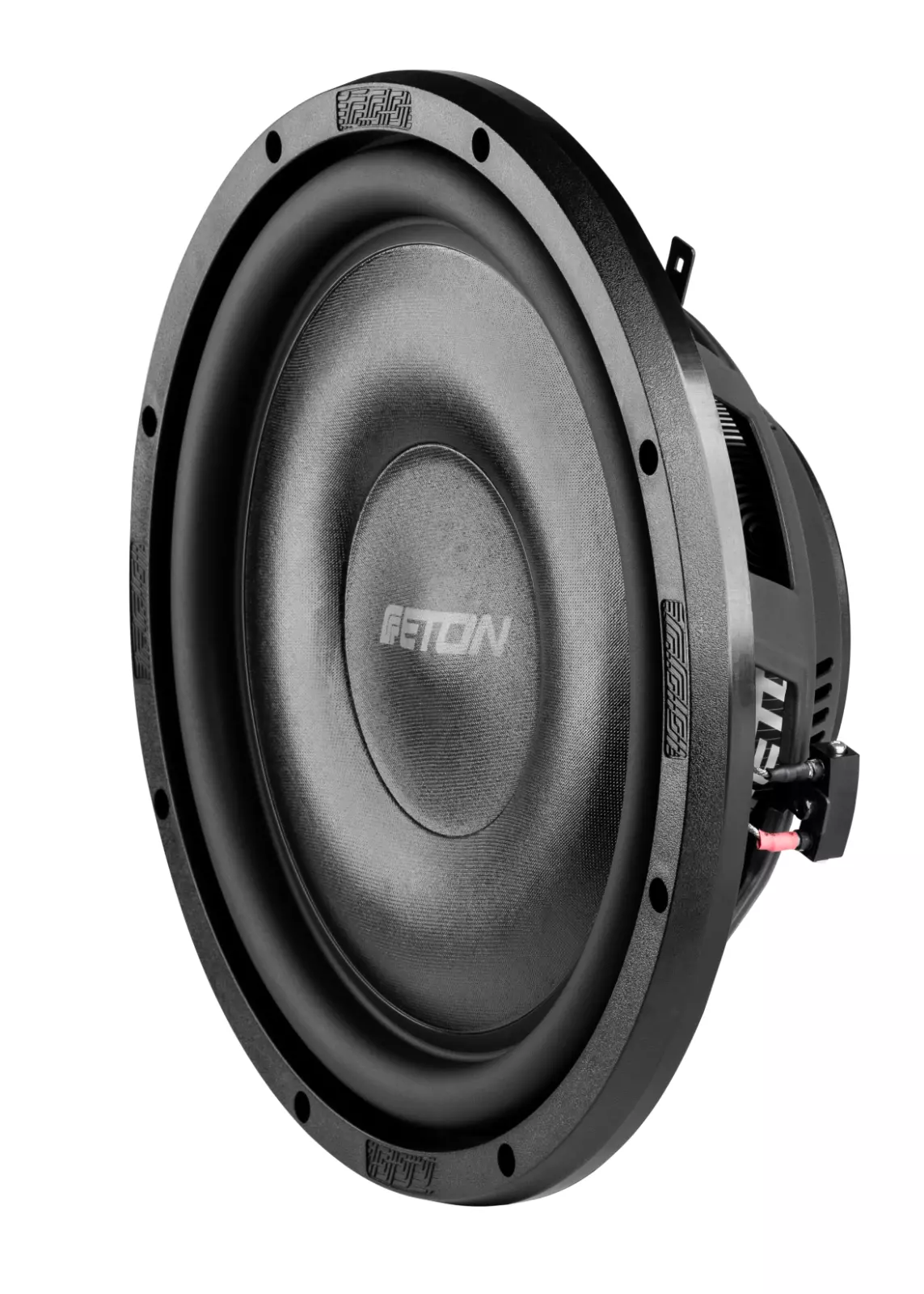 Plochý, kmitavý: Díky instalační hloubce pouhých 85 mm nebo 95 mm patří reproduktory ETON k nejplošším basovým reproduktorům ve své třídě – umožňuje to jejich geniální konstrukce. Subwoofery PW FLAT se proto navzdory velkým feritovým magnetům instalují velmi snadno. Univerzálně použitelné šasi subwooferu lze
