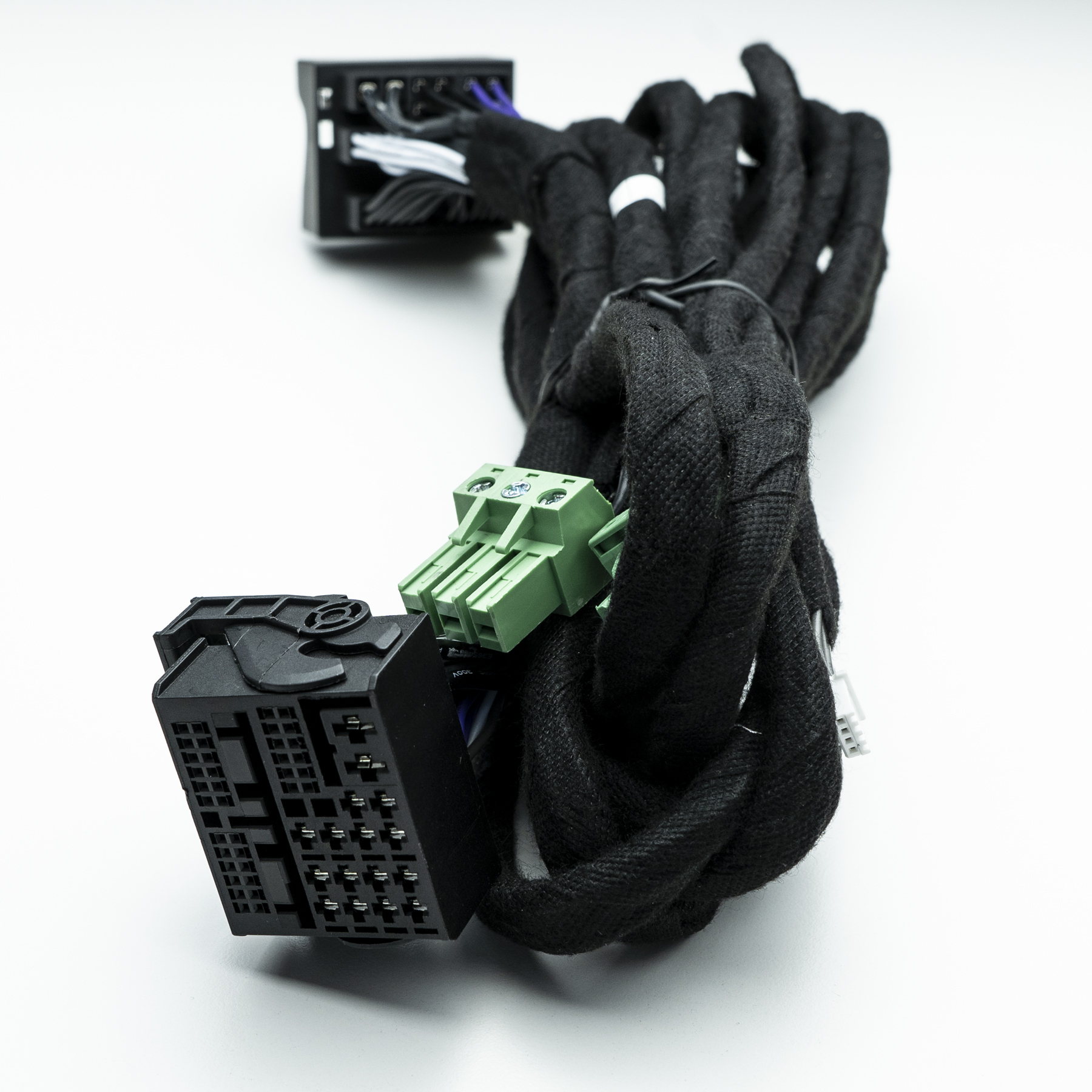 Sada propojovacích kabelů Plug and Play pro instalaci zesilovače PA 2 a podsedadlového subwooferu USB 6AR přímo na konektor PowerQuadlock za hlavní jednotkou. Napájecí odbočka i odbočka signálu High-Level Audio 1 a přívod audio signálu do originálního kabelového svazku s odpovídajícími konektory pro zesilovač a subwoofer, vhodné pro VW T6.1 Transporter a další (od BJ2015 s MQB PowerQuadlock).