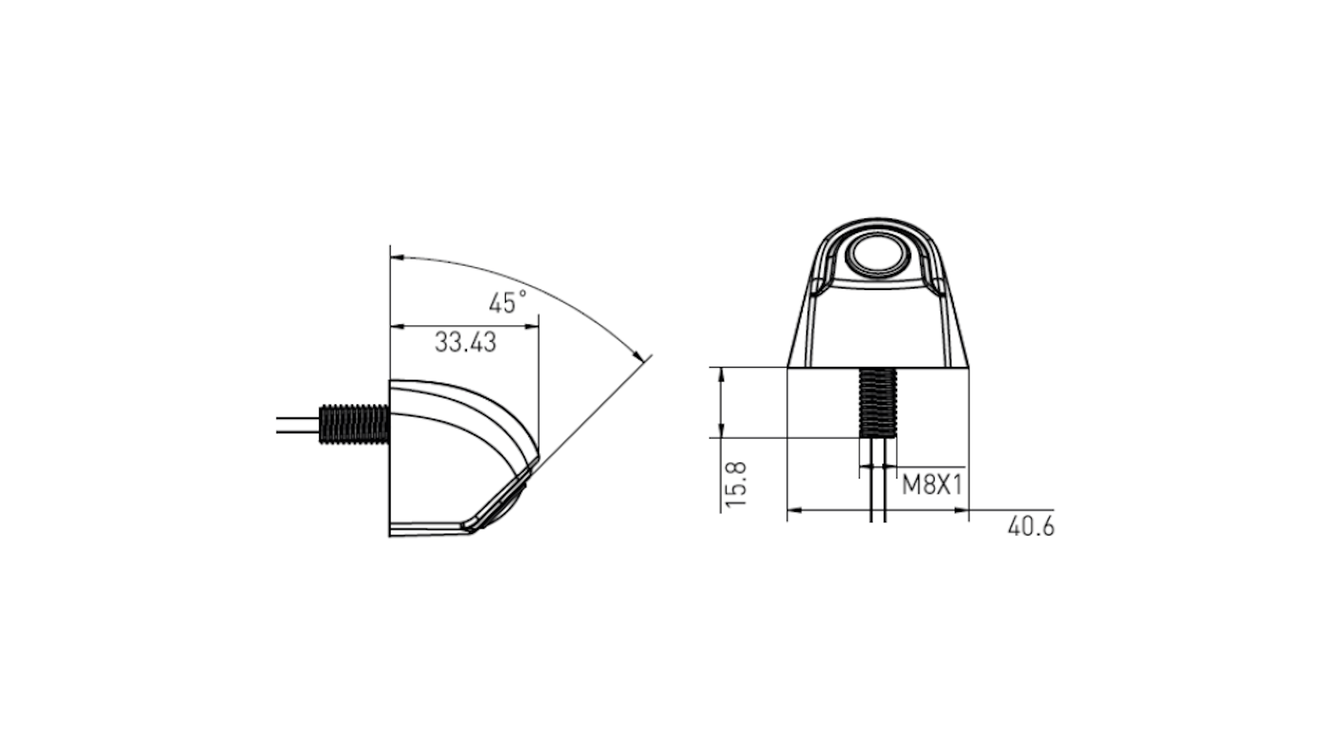 • Tlakově lité hliníkové pouzdro s upevňovacím šroubem M8