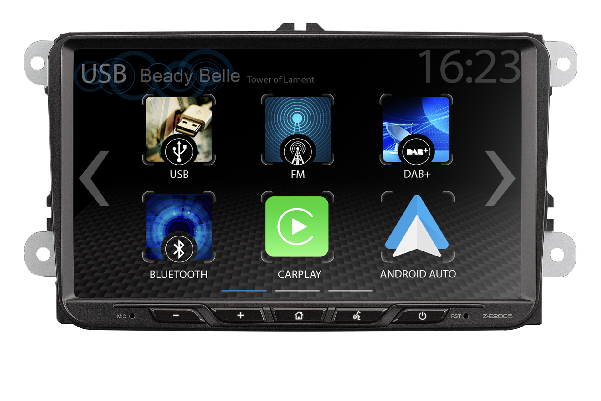 Inovativní multimediální funkce včetně bezdrátového Apple CarPlay a bezdrátového Android Auto™: Z-E2065 je moderní infotainer E>GO 6. generace, vyvinutý speciálně pro modely VW, Seat a Škoda z let 2003 až 2014 nebo 2021. Infotainer Z-E2065 je připojen k palubní elektronice vozidla prostřednictvím sběrnice CAN a podporuje komfortní funkce dostupné ve vozidlech VAG z výroby, jako jsou MFD/MFD+, multifunkční volant, OPS a zobrazení menu CLIMATRONIC, včetně připojení k originálním aktivním zvukovým systémům.