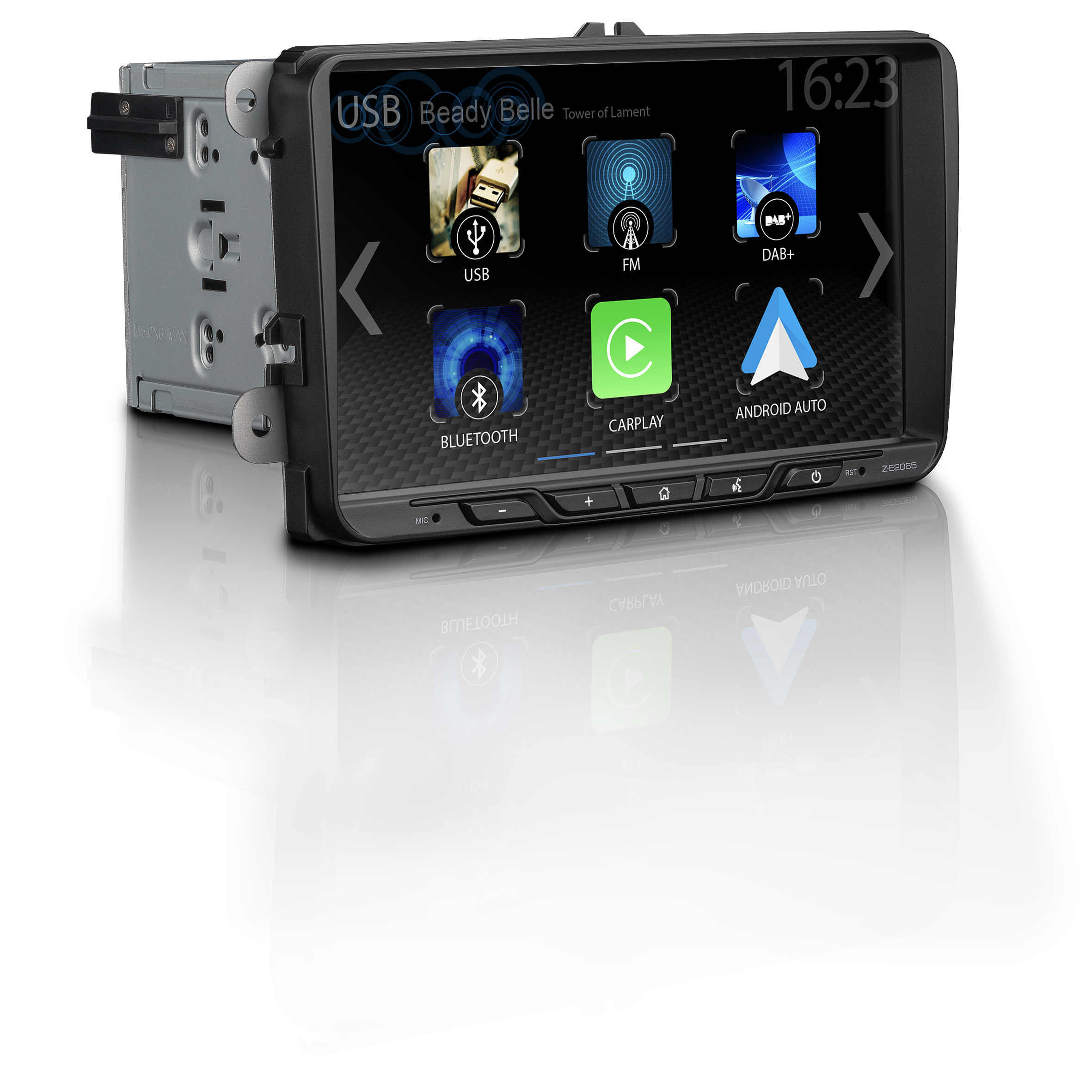 Z-E2065 jako infotainer E>GO dokonale zapadá do kokpitu, včetně červeného nebo bílého podsvícení ovládacích tlačítek. Všechny funkce a zdroje zařízení se snadno ovládají díky přehlednému konceptu ovládání pomocí ikon aplikací na kapacitním dotykovém displeji s úhlopříčkou 9″ / 22,9cm nebo pomocí klasických tlačítek. Z-E2065 se zaměřuje především na mimořádně snadné a bezpečné používání chytrých telefonů prostřednictvím bezdrátového Apple CarPlay a bezdrátového Google Android Auto™: Bezdrátové připojení k chytrému telefonu přes WiFi, Apple CarPlay a Google Android Auto™ umožňují snadné ovládání během jízdy: telefonování, navigace, poslech hudby nebo podcastů – všechny podporované aplikace a funkce lze také ovládat pomocí hlasových příkazů Apple Siri nebo hlasového asistenta Google.